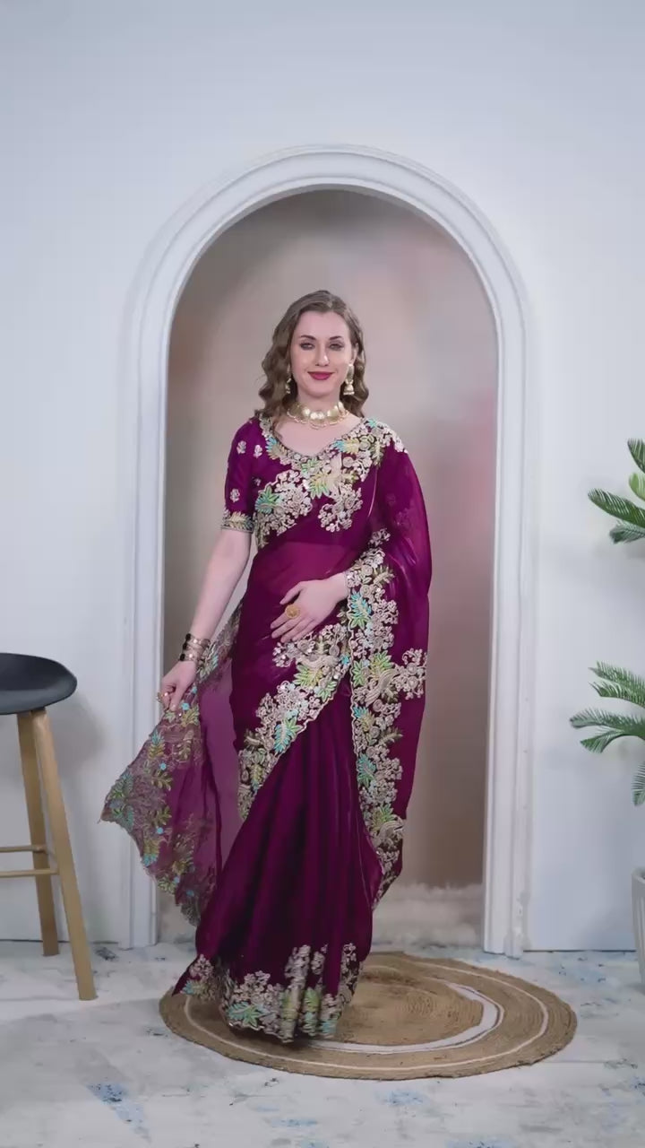 Elevate your wardrobe with this exquisite Pure Soft Jimmy Cho saree featuring meticulous heavy embroidery with 6 needles multi-thread work. The saree showcases stunning coding and sequins embellishments complemented by a fancy cutwork border. Accompanied by a 1.2-meter unstitched Mono Banglory Silk blouse piece with elegant embroidery work. This premium design offers uncompromising quality and craftsmanship for the discerning connoisseur.